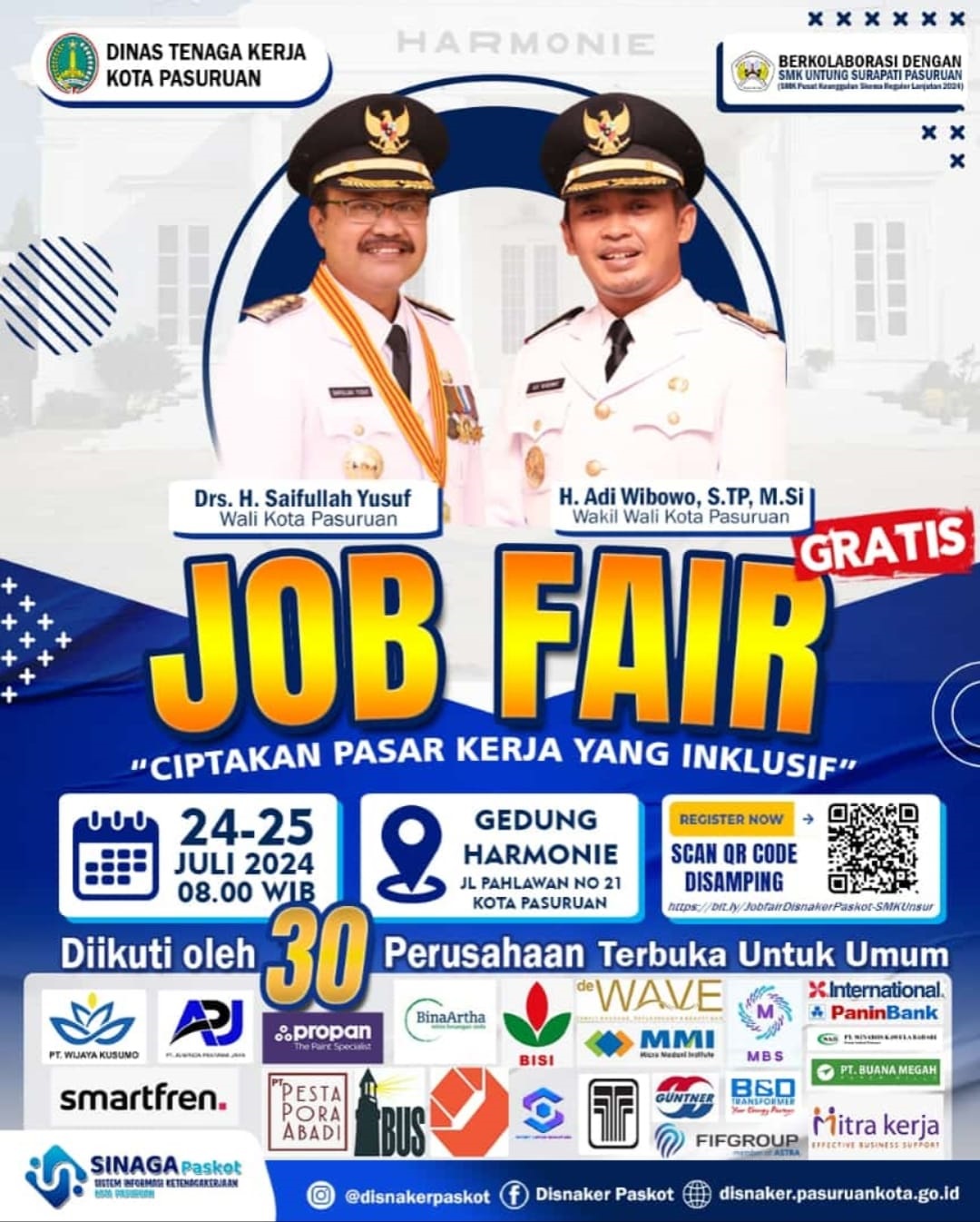 Layanan Job Fair yang berkolaborasi SMKS Untung Surapati dan Dinas Tenaga Kerja Kota Pasuruan merupakan layanan yang mempertemukan antara pencari pekerjaan dan pemberi kerja.